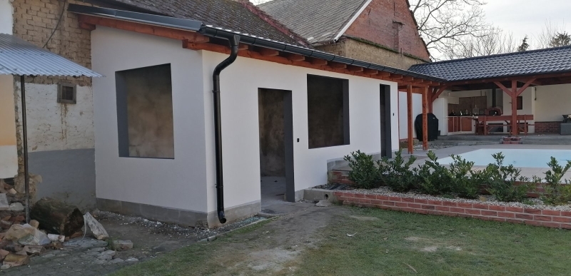Realizace exteriéru přístavku v rodinného domu v Rokytnici, Olomoucký kraj. Venkovní omítky a malba.